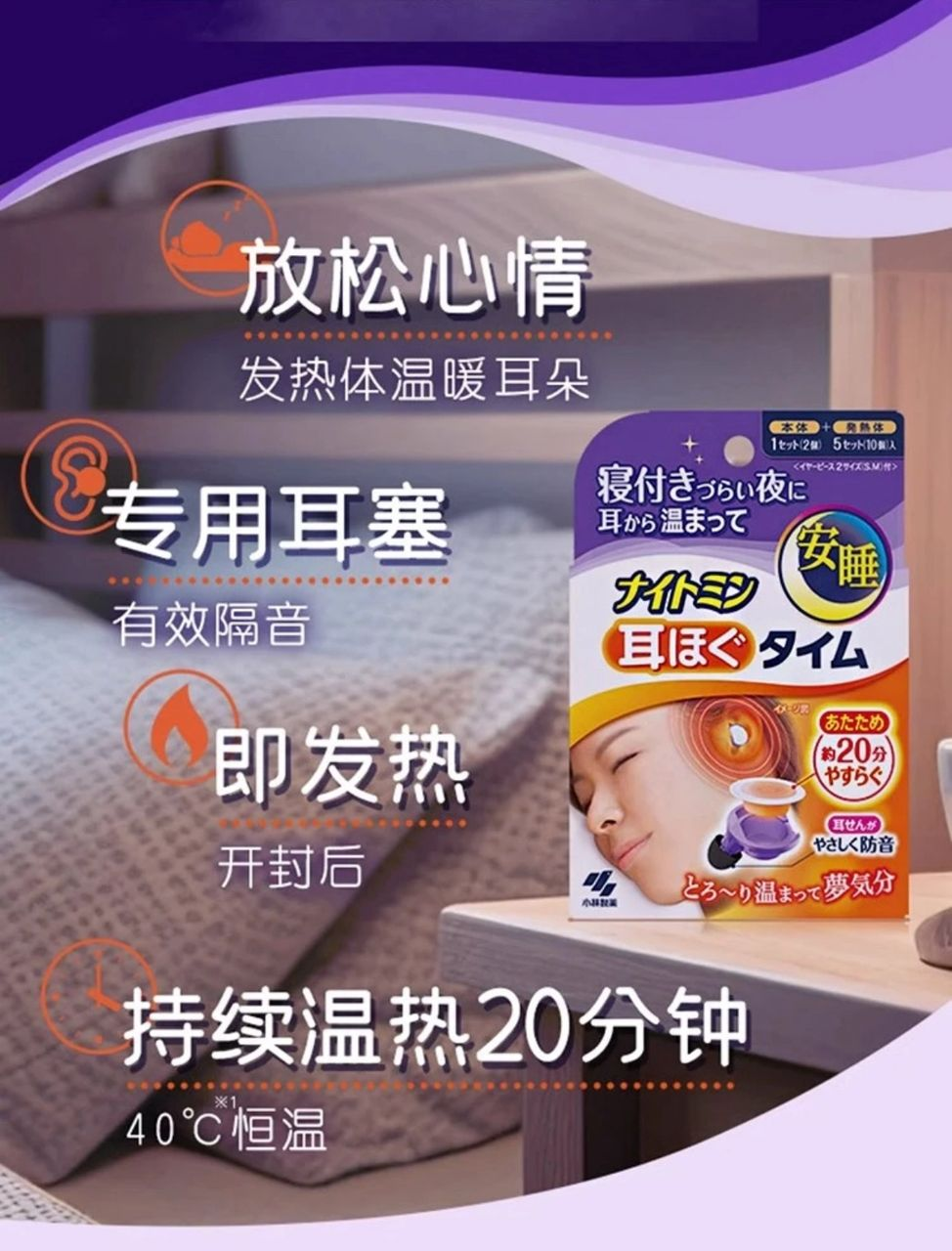 暖暖贴合耳道的设计,让耳朵感受到恰到好处的温度,整个人瞬间放松,更容易入睡。